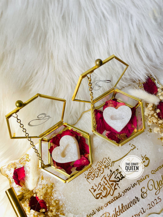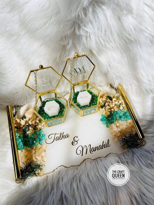 White & Gold Resin Engagement Platter with Double Hexagon Boxes
