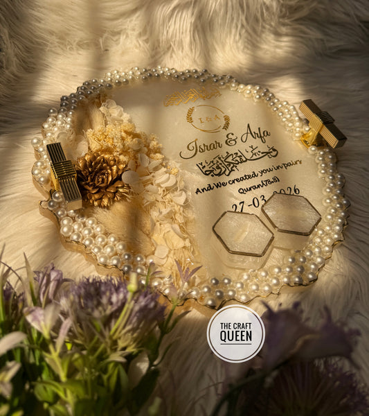 Luxury Islamic Resin Wedding Tray with Pearls | Customized Nikkah Gift Pakistan